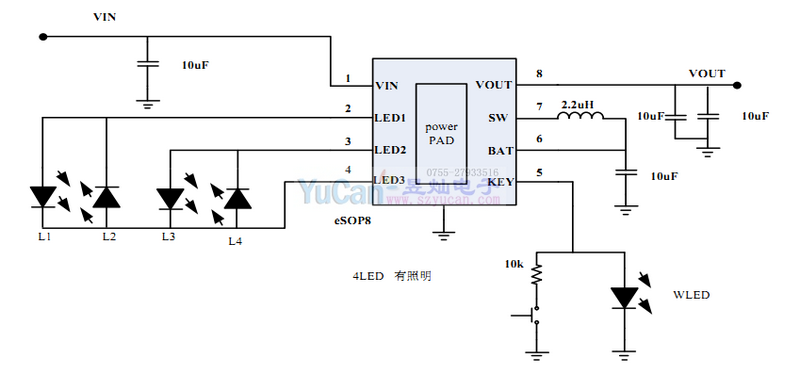 IP9315支持3、4顆LED電量顯示。