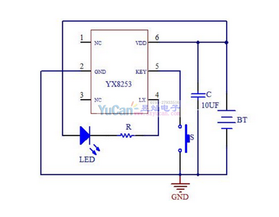 YX8253是一顆用輕觸開關控制功能切換的LED功能驅(qū)動芯片,可以直接驅(qū)動1-5WLED,采用了極小的SOT23-6封裝形式,僅需要一顆電容器件,可節(jié)省PCB空間,又節(jié)省系統(tǒng)的成本。三節(jié)干電池或一節(jié)鋰電可以驅(qū)動1-5W的LED。通過輕觸開關控制LED不同功能變化